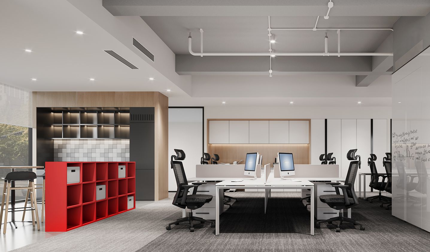 This is a long and narrow office space, and there are congenital obstacles in the communication and interaction. However, in the design of space division, the entrance is placed in the middle of the space...